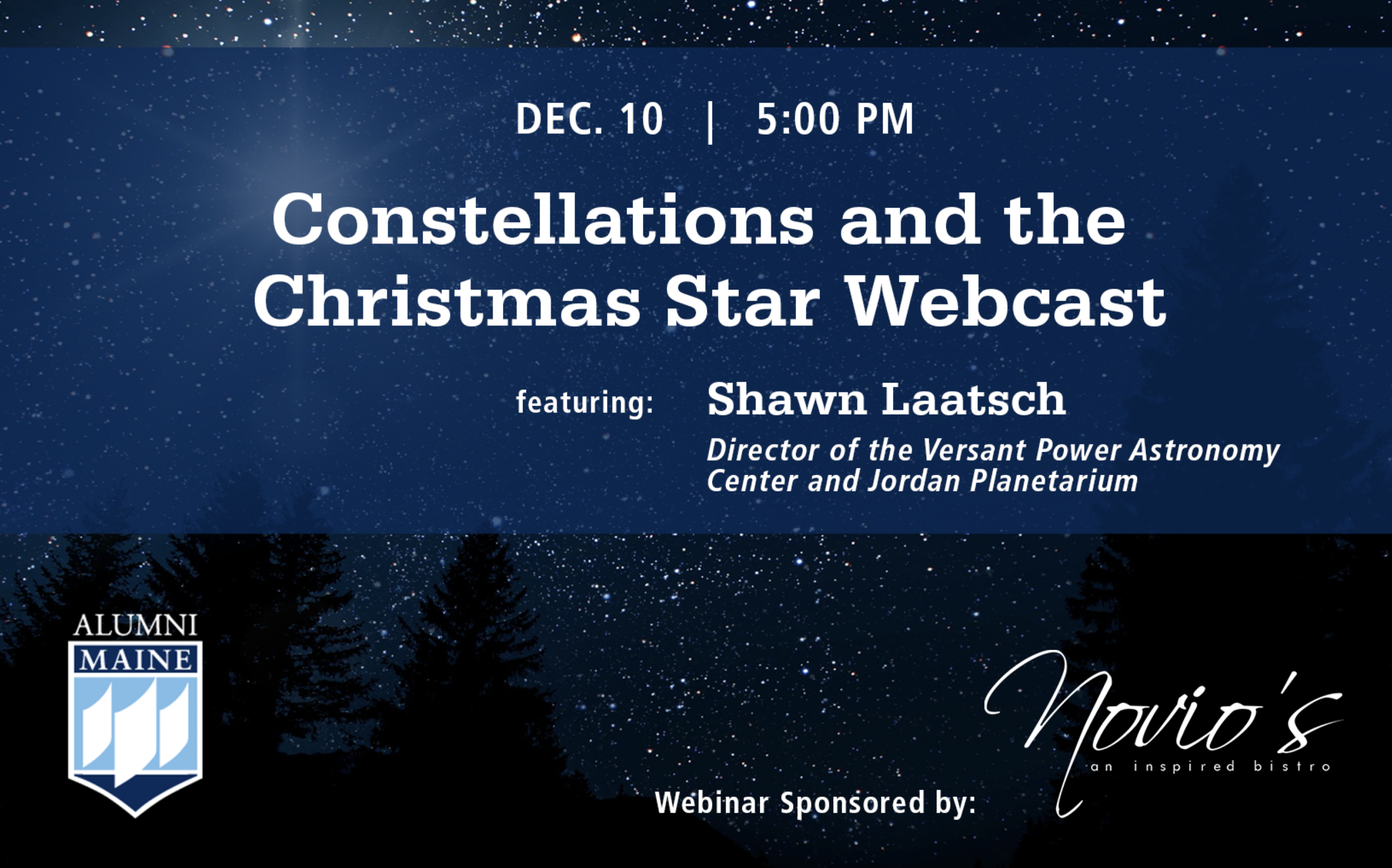 Watch a recording of the Alumni Association’s recent Zoom webcast “Constellations and the Christmas Star” with Shawn Laatsch, director of the Versant Power Astronomy Center and Jordan Planetarium. Laatsch introduces the stars, constellations, and planets seen in our winter skies. Learn how to find them from your own backyard, see what special planetary conjunction is taking place later this month, and take a look at what the famed Christmas star might have been.