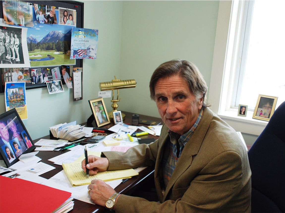 Jack Cashman ’73 has worn many hats in his adult life. A long career in the insurance and commercial real estate businesses. Magazine publisher. Old Town City Councilor and Maine State Legislator. Major policymaking roles as Special Advisor to Maine Governor John Baldacci ’86, State Commissioner of Economic and Community Development, and Maine Public Utilities Commission Chairman.