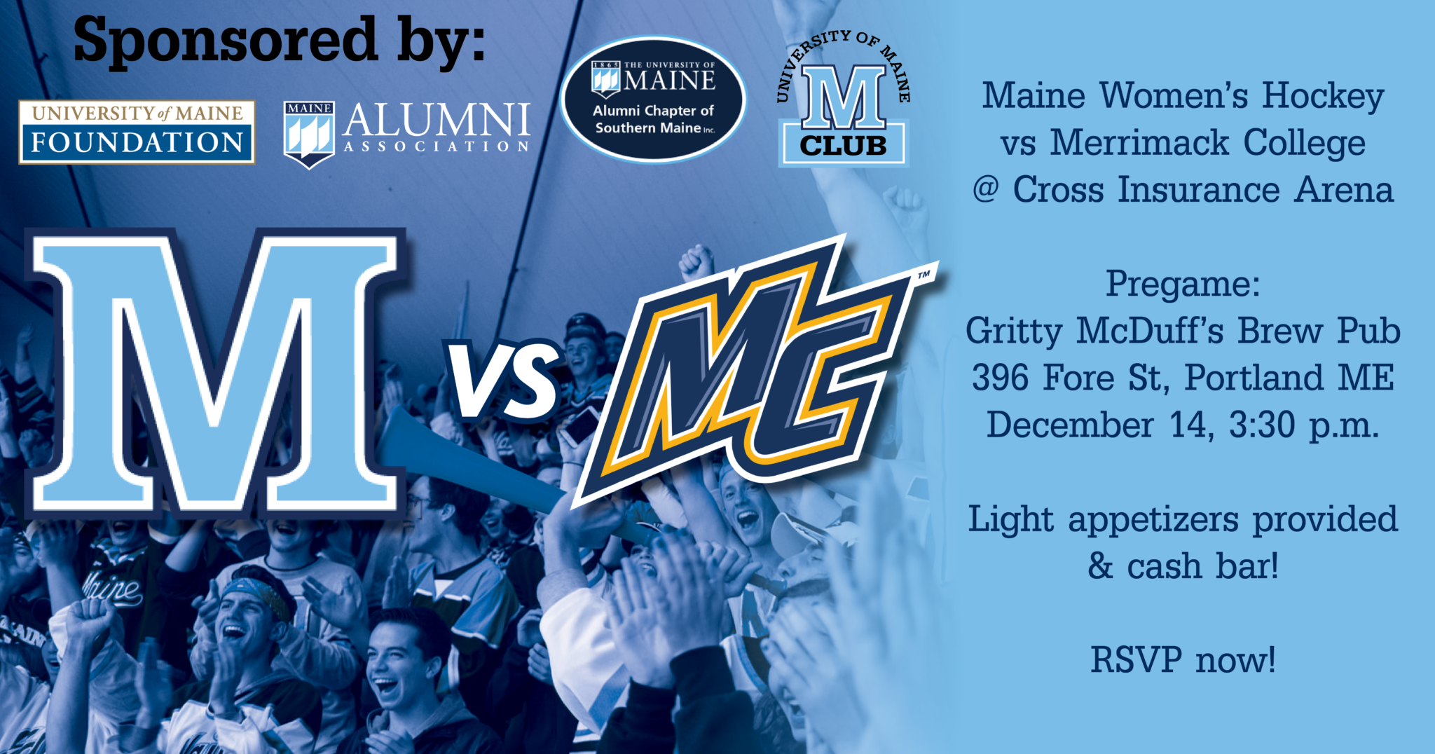 The Black Bears are headed to Portland, ME! Join fellow Black Bear students, alumni, and friends in Portland, Maine as women’s hockey plays against Merrimack at the Cross Insurance Arena.