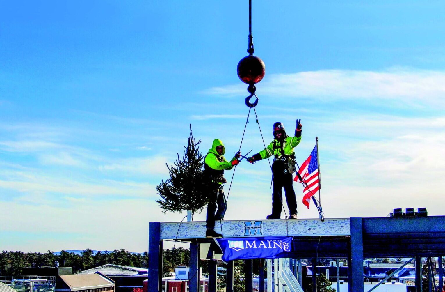 When the final beam of the Ferland Engineering Education and Design Center was installed during a virtual Topping Off Ceremony in February 2021, the Crosby Clip played a part. The Crosby Clip is part of the legacy of UMaine mechanical engineer-ing graduate Oliver Crosby, a member of the Class of 1876.